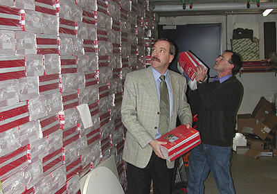 Wolfgang Schütz, neuer Bad Uracher Tourismus-Manager, und Hausmeister Josef Pirhofer bei den Prospekten für die CMT.