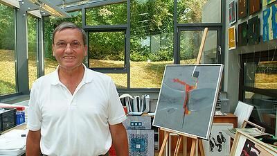 Von der Profession zur Passion: Anders als die Architekturaufträge früher, kann P.L. Dolmetsch jetzt Bilder, an denen er arbeitet, auch mal liegen lassen. Zumal er sein Haus um ein Atelier erweitert hat.