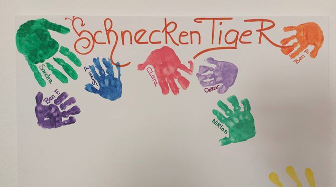 Sandra, Ben F., Simon P. Clara, Oskar, Ben P., Niklas, Raham und Annika werden im Schnecken-Tiger in der Rübgartener Ortsmitte betreut werden. Das Bild entstand bei der Eröffnung. Nachdem Wannweil einen Vertrag unterschrieben hat, können Kinder von dort auch in anderen Tiger-Gruppen betreut werden.