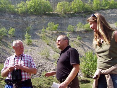 Manfred Dallmann, Helmut Reichenecker und Miryam Maus von den »Naturfreunden« (von links) machten die Wanderer, die an der Eröffnung der ersten beiden »Natura Trails« im Biosphärengebiet Schwäbische Alb teilnahmen, mit den Besonderheiten des Naturschutzgebiets am ehemaligen Steinbruch »Hörnle« vertraut.