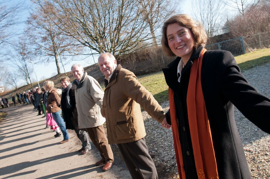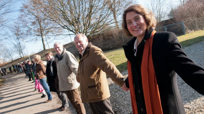 Die Anweisungen waren klar, die Beteiligten schnell: 25 Minuten dauerte es, dann stand die Menschenkette zwischen Walddorf und Häslach.