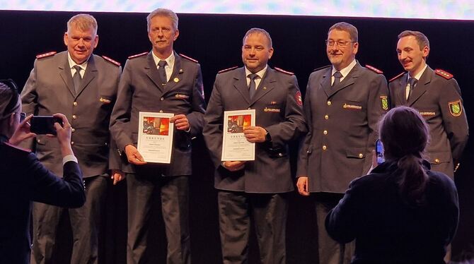 Man dürfe nicht vergessen, dass 98 Prozent der Mitglieder der Feuerwehren im Land freiwillig und im Ehrenamt eine Pflichtaufgabe der Gemeinde übernehmen. Im Rahmen der Verbandsversammlung ist Dettingens Bürgermeister Michael Hillert mit der Ehrenmedaille des Deutschen Feuerwehrverbandes ausgezeichnet und zum Ehrenmitglied ernannt worden. Sonja Haid ist für ihre langjährige Tätigkeit als Leiterin des Fachgebiets Frauen zum Ehrenmitglied ernannt und mit der Ehrenmedaille des Kreisfeuerwehrverbandes ausgezeichnet worden. Zu Ehrenmitgliedern für jeweils 15 Jahre Dienstzeit als Kommandant sind Armin Pangerl (Werkfeuerwehr ZfP Zwiefalten) sowie Heiko Reutter (Mehrstetten) ernannt worden. (eg)