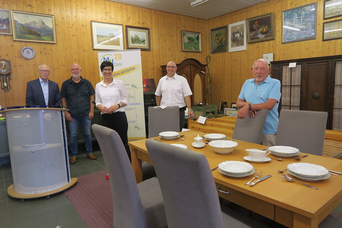 Die M.A.I.-Vorstände Reiner Sauter (von links) und Friedemann Salzer, Oberbürgermeisterin Carmen Haberstroh, Geschäftsführer Sven Rauer und der frühere Geschäftsführer Jürgen Böcker feiern das 25-jährige Bestehen der Metzinger-Arbeits-Initiative.