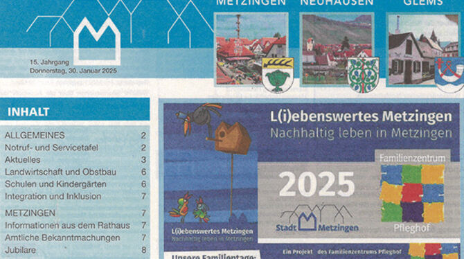 METZINGEN. Jeder Metzinger Haushalt hat es einmal die Woche zuverlässig im Briefkasten stecken: s'Blättle. Jahrzehntelang war es das Bekanntmachungsblatt der Stadt Metzingen, wie der blaue Streifen ganz unten verrät. Ab sofort nicht mehr. Weil der Verlag, der es druckt, es aufs Wochenende hin verteilt. Zuvor war es donnerstags im Kasten. Dem Tag, an dem sich alle vier Wochen der Gemeinderat trifft. Dessen Tagesordnungen müssen mindestens eine Woche vorher öffentlich bekanntgemacht werden.