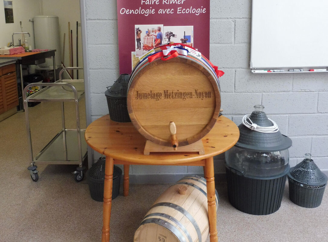 Ein Glasbild des Noyoner Jean-Calvin-Hauses und ein Weinfass für den noch jungen Noyoner Weinanbau wechselten als Gastgeschenke der beiden Städte die Besitzer. 140 Gäste, Gastgeber und Freunde dieses Treffens ließen sich von einer Musikgruppe und ausliegenden Texten zum Mitsingen der Chansons animieren. Durch ausgestellte Fotos und Zeitungstexte hatte ein französisches Team die 40 Jahre der Partnerschaft durch viele Erinnerungen zu neuem Leben erweckt.