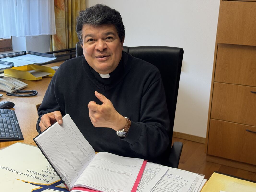 Pfarrer Marco Antonio Rodrigues Rivas in seinem Büro in der katholischen Kirchengemeinde in Metzingen. FOTO: RUOF