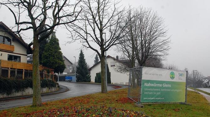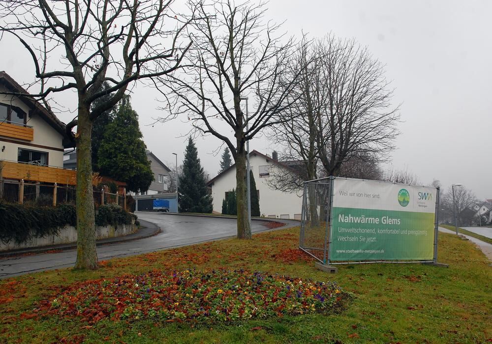 Banner der Stadtwerke Metzingen werben am Glemser Ortseingang um energetische Umsteiger.