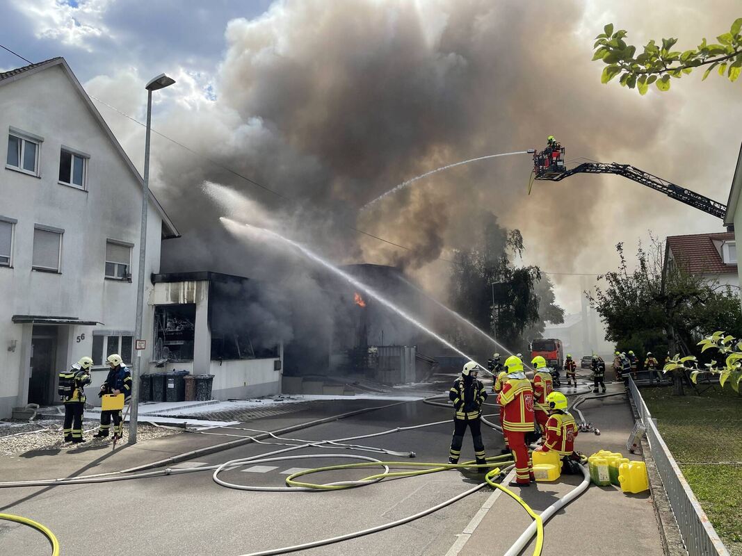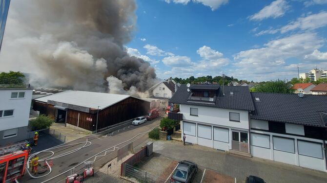 Vier Minuten nach der Alarmierung war der erste Feuerwehrmann am Brandort in der Max-Eyth-Straße, berichtet Einsatzleiter Andreas Merz. »Wir haben einen massiven Löschangriff aufgebaut«, sagt der stellvertretende Gesamtkommandant der Metzinger Feuerwehr. Mit der »Riegelstellung« wurde das Übergreifen der Flammen auf die danebenliegende Hallen erfolgreich verhindert.