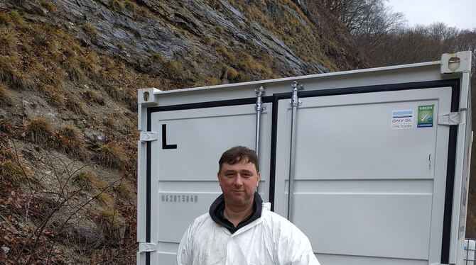 Mit 40 Kilo Ausrüstung im Seil in gefährlicher Höhe bei Hülben