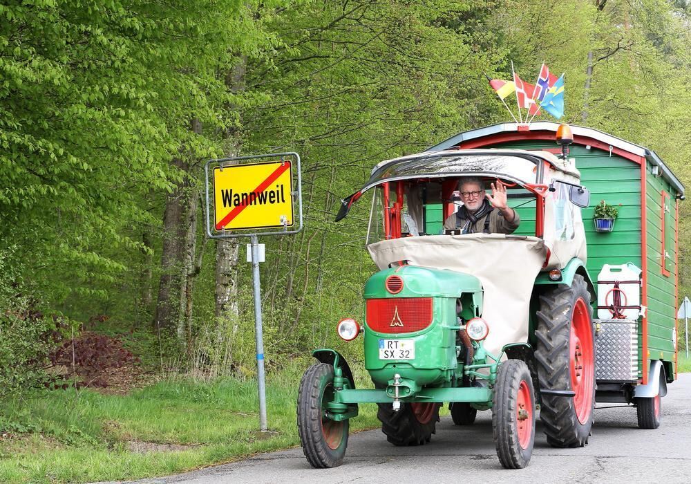 Der 66-jährige Klaus Schäfer aus Wannweil ist unterwegs gen Nordkap: mit seinem Deutz-Traktor und einem selbst gebauten Schäferwagen. Da er nur Nebenstraßen nehmen kann, hat er gut 9000 Kilometer vor sich.