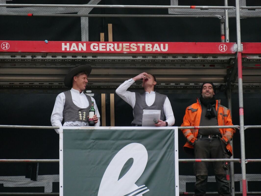 Mit Glücksschwein und drei Gläsern Wein Richtfest am Metzinger Gymnasium gefeiert