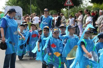 Kostüme mit bunten Fischen verziert - der Neckar war mehrmals Thema beim großen Kinderumzug des 25. Dorffests in Neckartenzlingen.