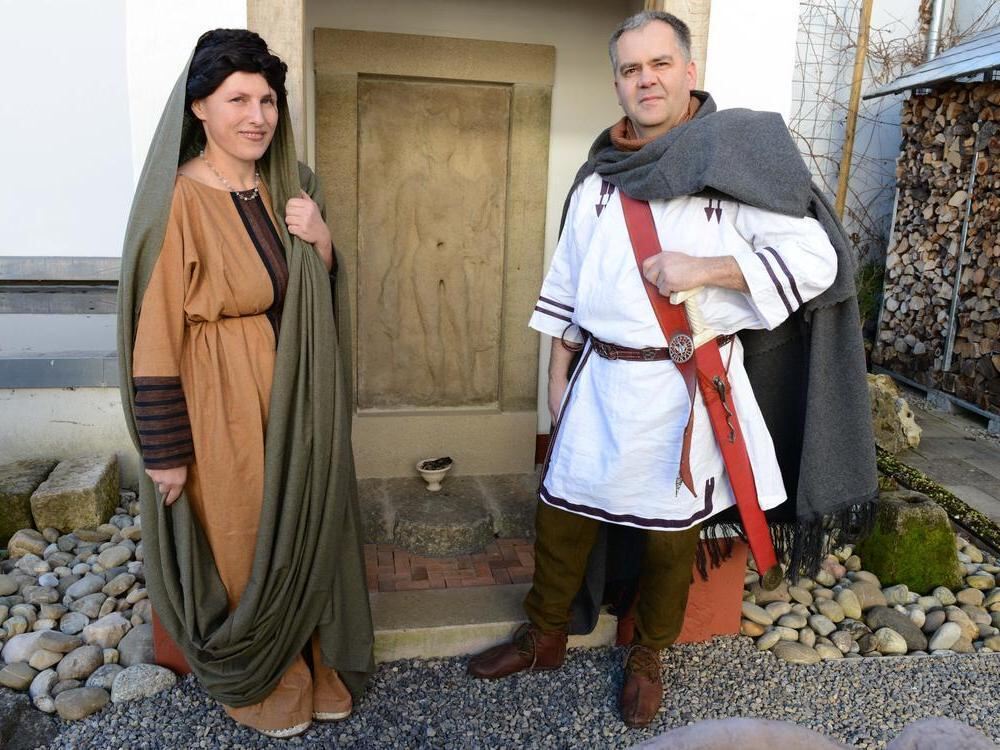 Monika und Alexander Zimmermann, gekleidet in originalgetreu selbst gefertigter römischer Kleidung.