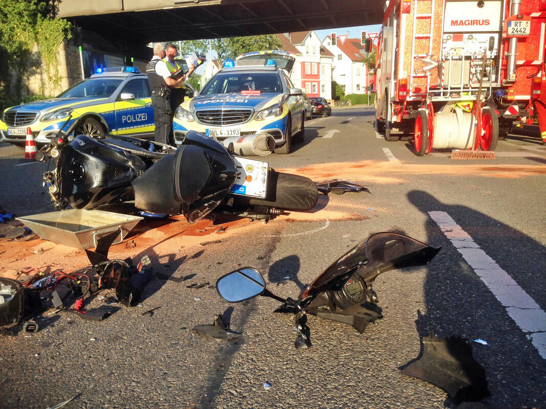 An der Kawasaki entstand 3 000 Euro, am BMW 9 000 Euro Schaden. Beide Fahrzeuge mussten abgeschleppt werden. Während der Rettung und Unfallaufnahme war die Ulmer Straße in beiden Richtungen gesperrt. Es bildeten sich Rückstaus bis weit auf die B 28. (GEA/pol/fw)