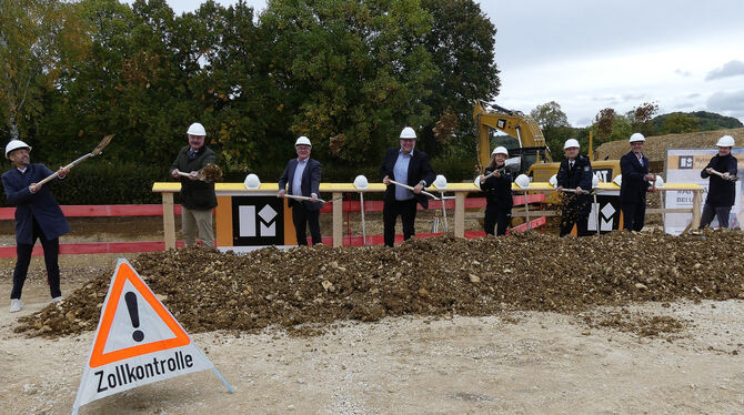 Symbolischer Spatenstich für den Neubau des Zollamts in Metzingen: Große Freude bei allen Beteiligten von Holy AG, Zoll und Stadt, dass nach langem Weg nun endlich der Projektstart für den Bau des neuen Zollamtsgebäudes folgen konnte. FOTO: SANDER
