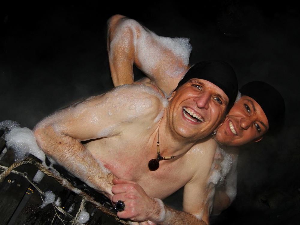 Keine Angst vor Kälte: Die Glotterpiraten genießen ein Vollbad.