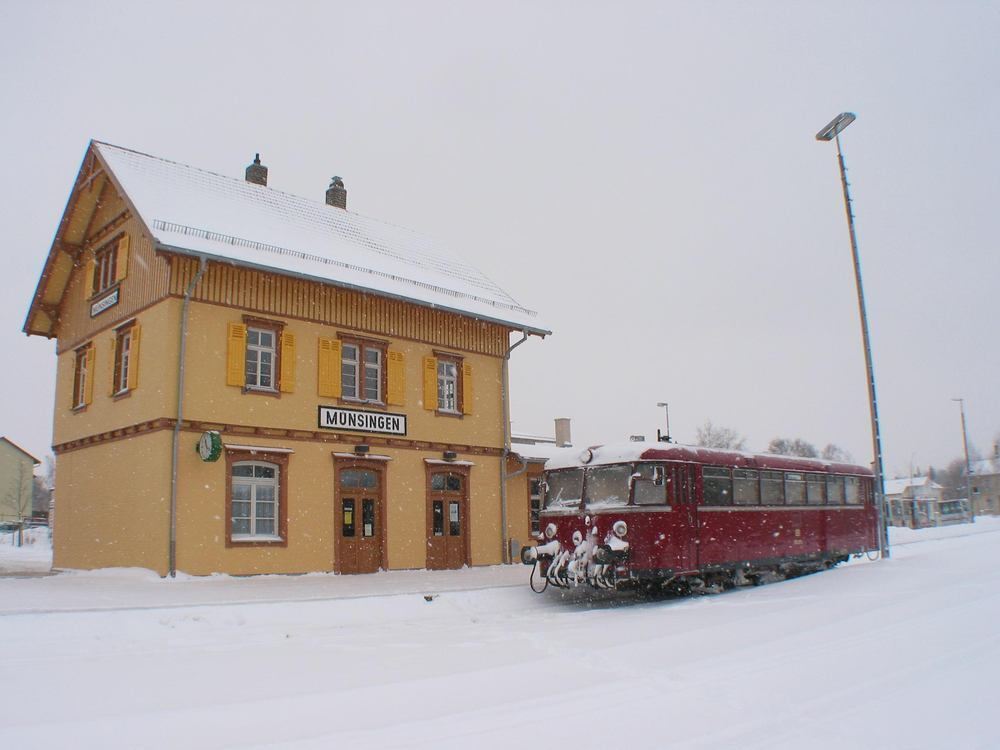 Fahrten des Sommerferien-Express mit einem historischen MAN-Schienenbus - hier im Winterquartier am Bahnhof Münsingen - treffen offenbar den Nerv der Kunden, wie ein Plus von mehr als 70 Prozent an Fahrgästen im Vergleich der Jahre 2011/2012 zeigt.