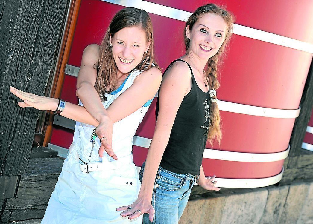 Kerstin Motz (links) und Andrea König waren die Neuentdeckungen des diesjährigen Metzinger Musical-Open-Airs auf dem Kelternplatz. Die eine brillierte als spleenig-schrille Gladys, rechte Hand des patriarchalen Textilunternehmers Myron Hasler, die andere als dessen cool-freche Chefsekretärin Mabel. FOTO: GERLINDE TRINKHAUS