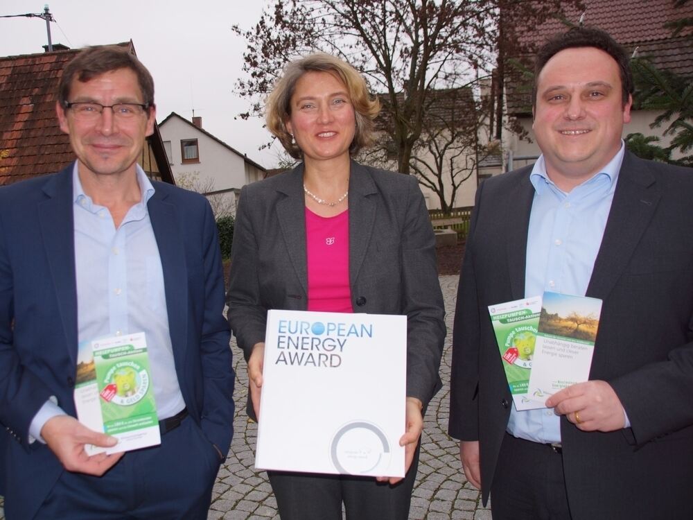 Die neuen Gesichter der Klimaschutzagentur: Geschäftsführer Tobias Kemmler (rechts), Beiratsvorsitzende Silke Höflinger und deren Stellvertreter Giancarlo Bragagnolo. FOTO: REY