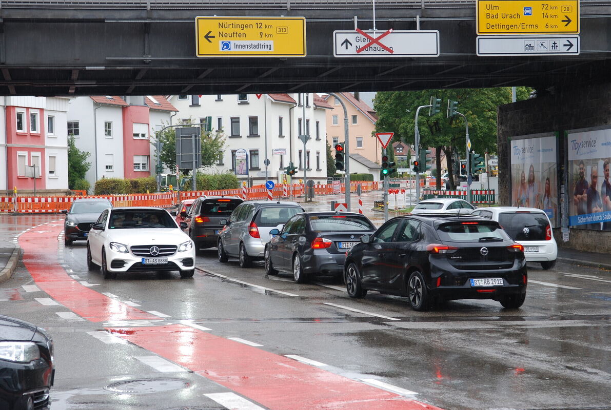 Wer es ruhiger mag, wählt den Weg an der Ermstalbahn entlang, den sich die Radler allerdings mit Fußgängern teilen müssen. Durch die Amtäcker- und die Heerstraße mit Tempo 30 geht es zur Unterführung unter den Bahnlinien und der B 313 und weiter über die Hindenburgstraße in Richtung Innenstadt. Durchs Wohngebiet Amtäcker-Brühl und die Äußere Heerstraße (nahe Lidl) fließt allerdings derzeit viel Schleichverkehr. Er umgeht die Baustelle in der Ulmer Straße, die, wie berichtet, noch bis Jahresende gesperrt sein wird: weil an der Einmündung der Wielandstraße in die Ulmer Straße ein Kreisverkehr gebaut wird. (GEA)