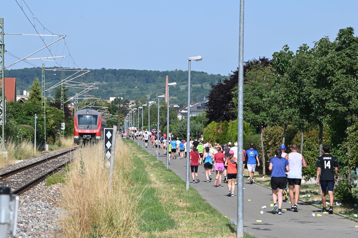 Läuferinnen und Läufer absolvierten den Ermstalmarathon auch entlang der Bahnstrecke.