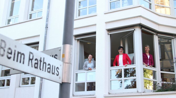 Oberbürgermeisterin Carmen Haberstroh (Mitte) im Ortscheck-Gespräch. Eingerahmt ist sie im Bild von ihrer Referentin Irina Storz (links) und ihrer Sekretärin Yvonne Uidl.