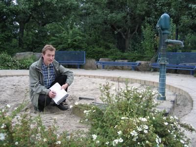 Hier funktioniert die Wasserpumpe, doch am Podest fehlt eine Platte. Stadtgärtner Volker Nagel notiert das und andere Mängel jeweils auf einem Formblatt. Aktiv wird dann der Bauhof, der in die regelmäßige Kontrolle eingebunden ist.