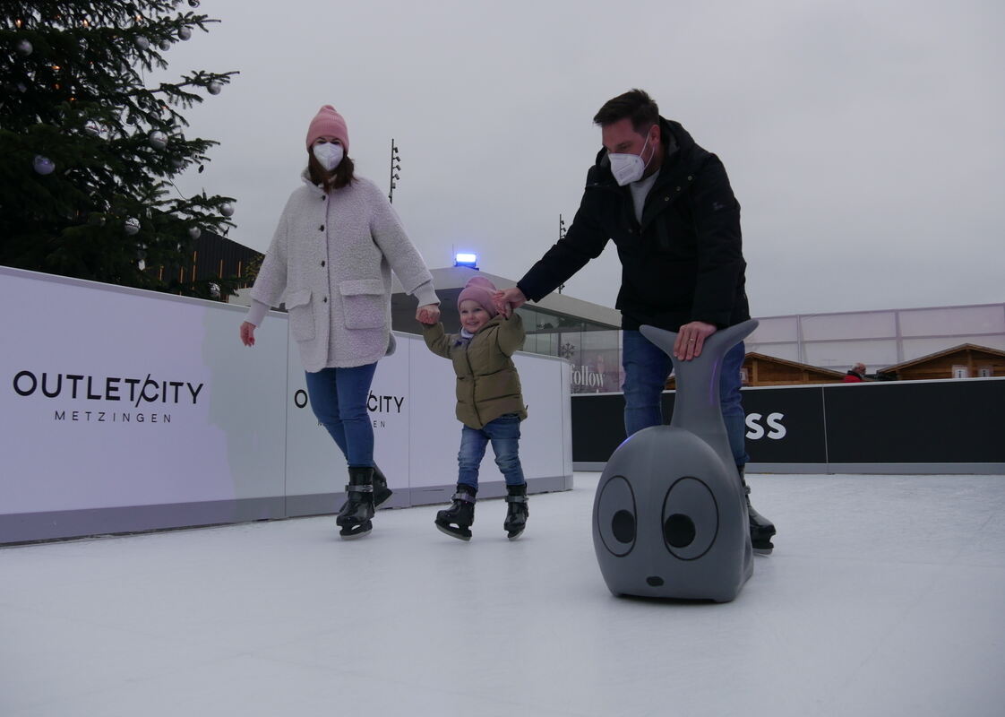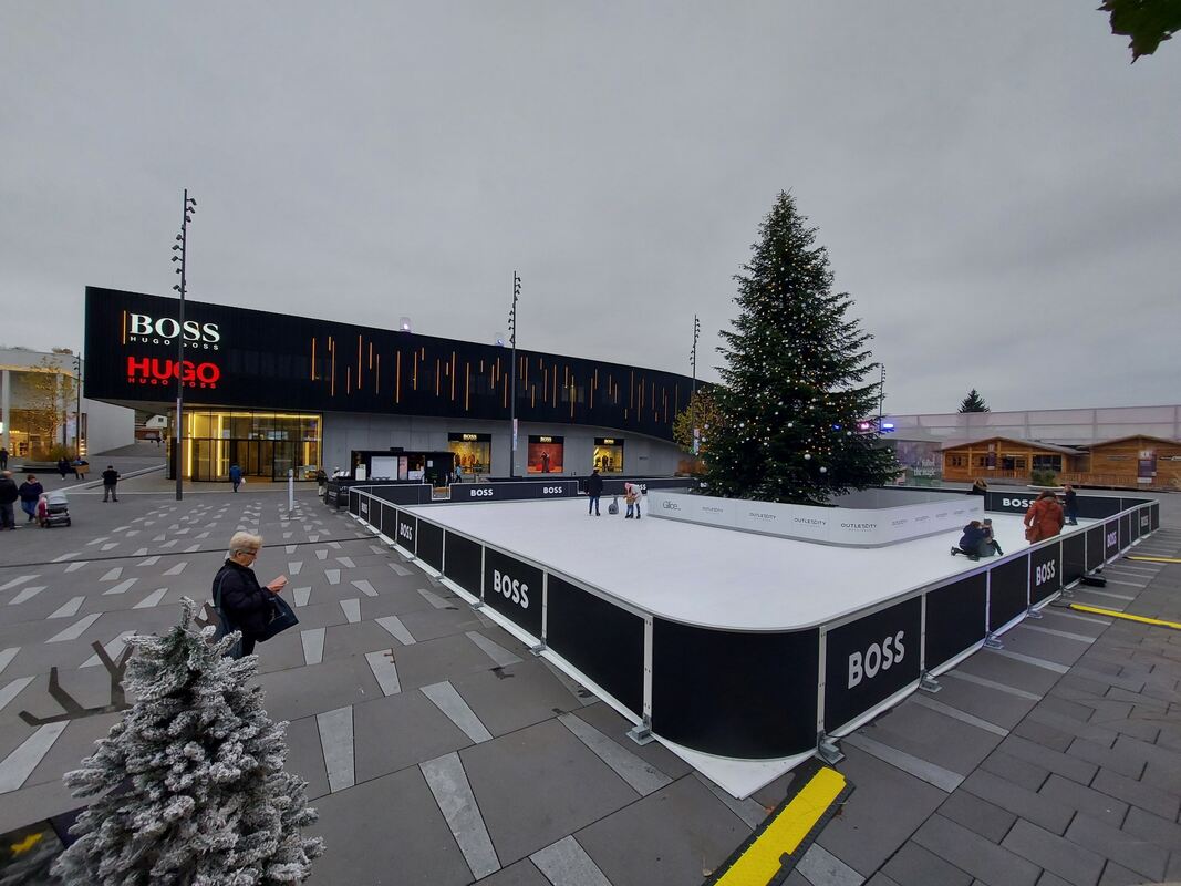Wie so eine Kunsteisbahn aussieht, konnte man im November 2021 in Metzingen sehen: Zur Black Week baute die Outletcity auf dem Hugo-Boss-Platz vom 15. bis zum 29. November eine Kunsteis-Bahn auf. Die sieht aus wie Eis, fühlt sich auch so ähnlich an, ist aber nicht kalt. Die Schlittschuhe gleiten ähnlich flüssig über die Fläche - ein Heidenspaß. Kunsteisbahnen funktionieren auch im Hochsommer unter sengender Sonne.