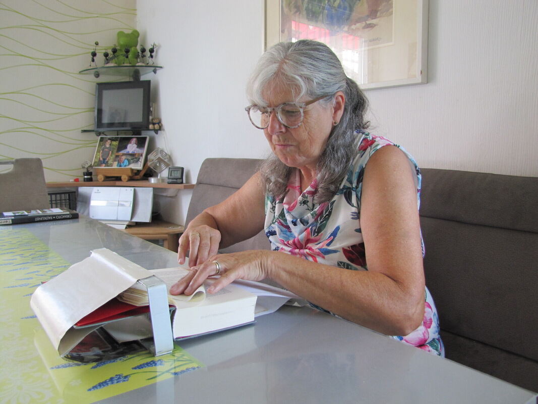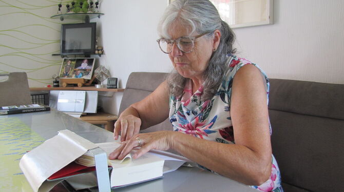 Sorgfältig faltet Ursula Lembeck Seite für Seite, bis das Orimoto-Kunstwerk entsteht.