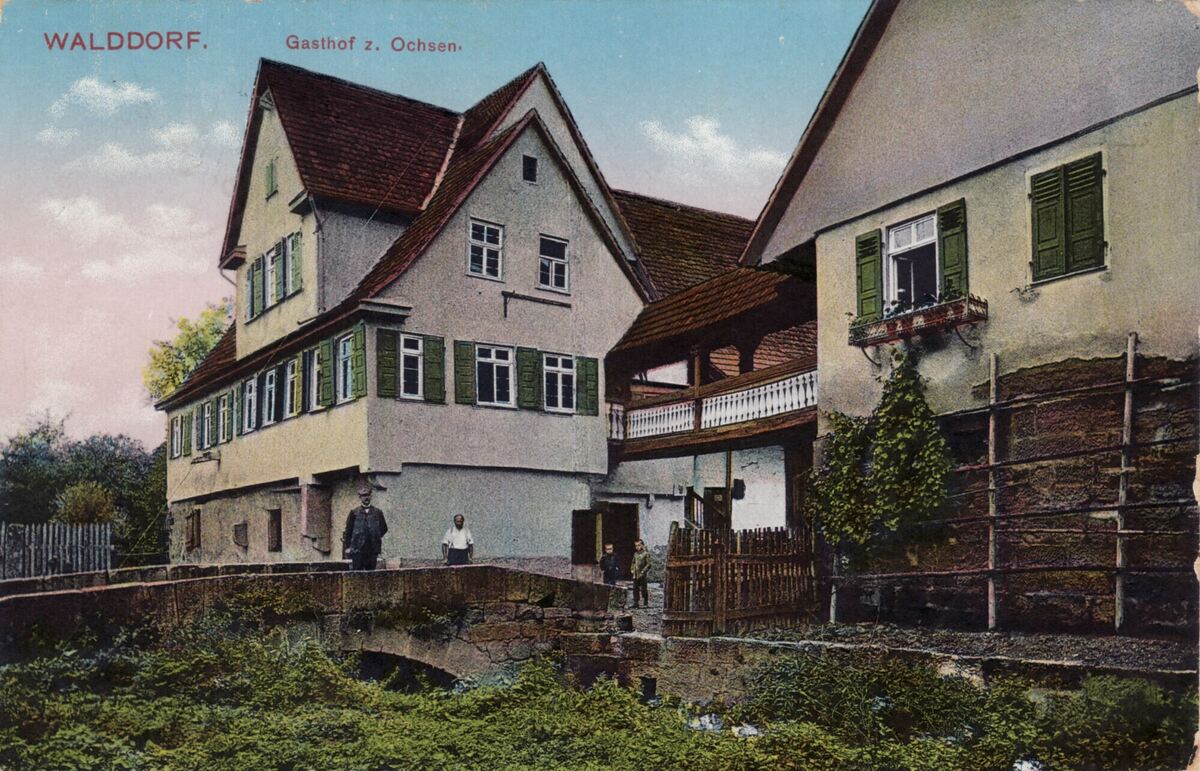 Der Walddorfer »Ochsen« auf einer historischen Postkarte. Er war einst erstes Haus am Platze und Ausflugsziel für Studenten.