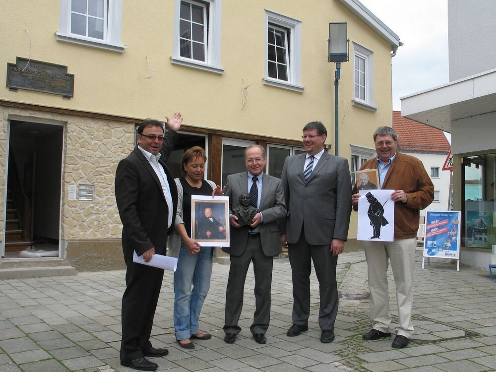 Sie freuen sich auf die Eröffnung, wenn aus Christian Friedrich Schönbeins Geburtshaus in der Reutlinger Straße 2 in Metzingen eine moderne Gaststätte mit musealem Charakter wird (von links): Kosmas Sidiropulos und Gudrun Kittelberger, die das Lokal betreibt, der Hauseigentümer Paul Seibold, OB Dr. Ulrich Fiedler und Peter Rogosch vom Arbeitskreis Stadtgeschichte.