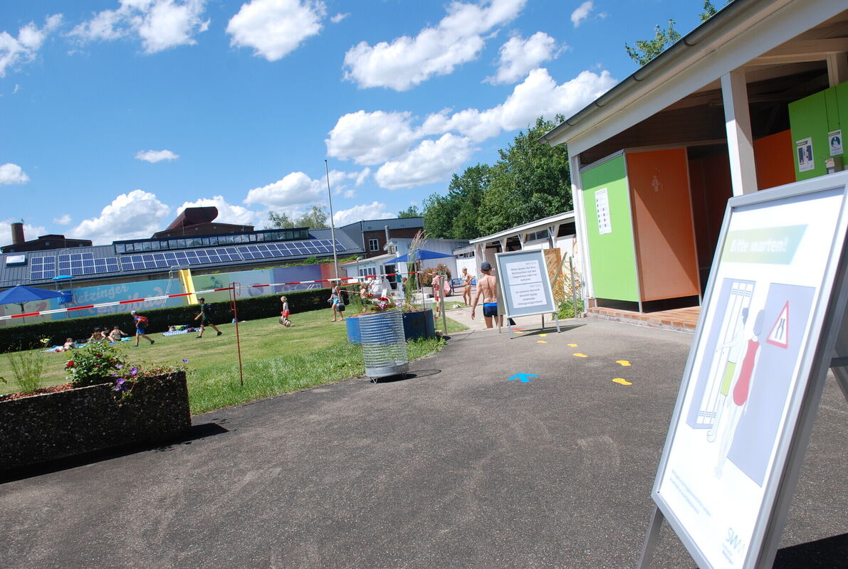 Das kombinierte 50-Meter-Schwimmer-/Nichtschwimmerbecken sowie der Kleinkinderplanschbereich sind geöffnet. Die weitläufigen Liegeflächen stehen nahezu vollständig zur Verfügung, um einen Platz mit ausreichend Abstand zu finden. Bisher nicht zur Verfügung steht die Rutsche. Der Sprungbereich ist betriebs- und bedarfsabhängig geöffnet. Die Kinderspielplätze und das Beachvolleyballfeld können unter Wahrung der Hygiene- und Abstandsregeln benutzt werden. Die Gastronomie ist geöffnet.