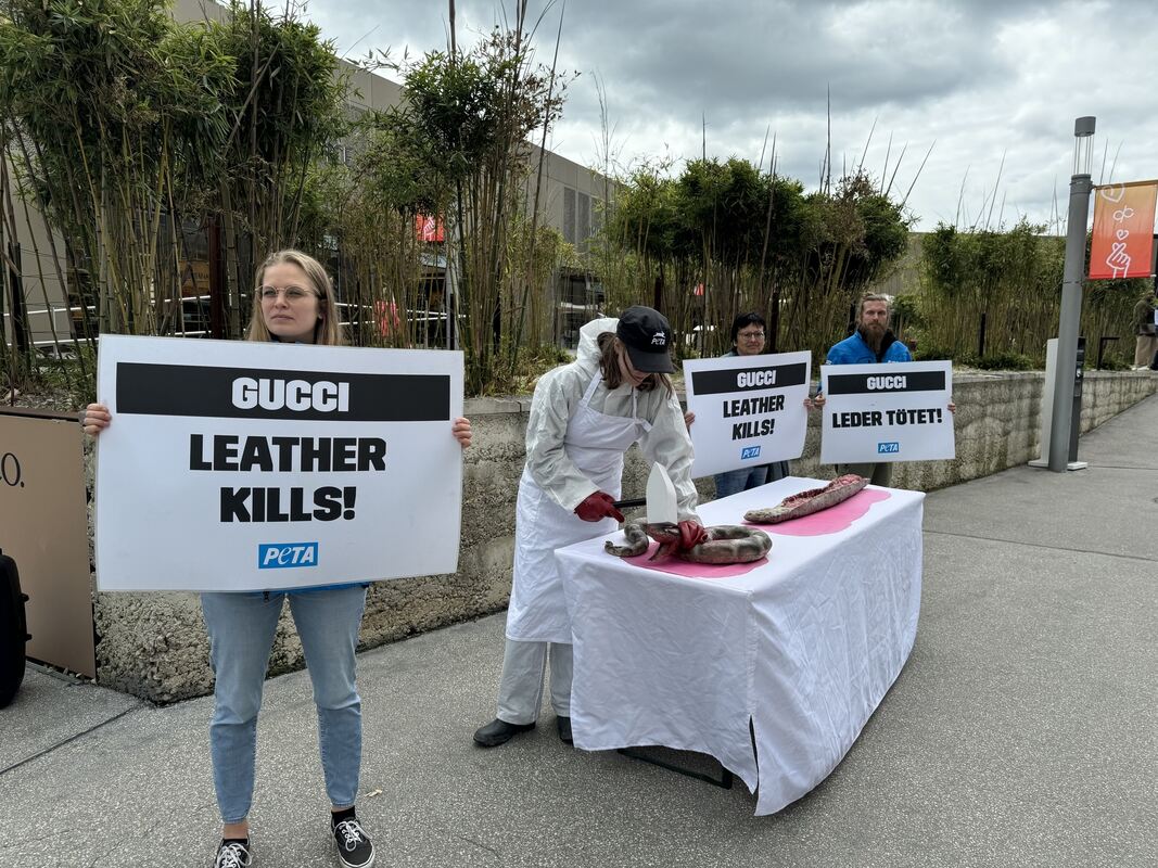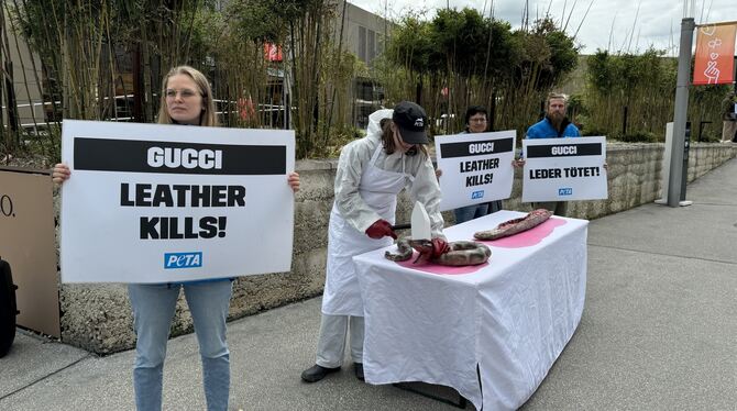 Die Tierrechtsorganisation demonstrierte gegen die Verwendung von Exotenleder für Taschen, Schuhe, Gürtel.