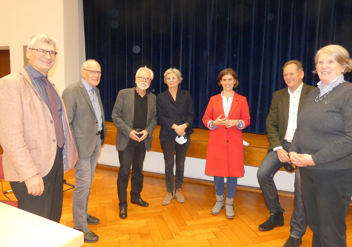 Ein Team, das Zukunft für das Martinshaus gestaltet: Pfarrer Albrecht Schäfer (links), Frieder Handel (Bauausschuss), Architekt Wolfgang Liese-Grässer, Architektin Helma Fuchs, Pfarrerin Hanna Karle, Gesamt-Kirchengemeinderats-Vorsitzender Andreas Bahnmüller und Martinsgemeinde-Kirchengemeinderats-Vorsitzende Maritta von Moser.