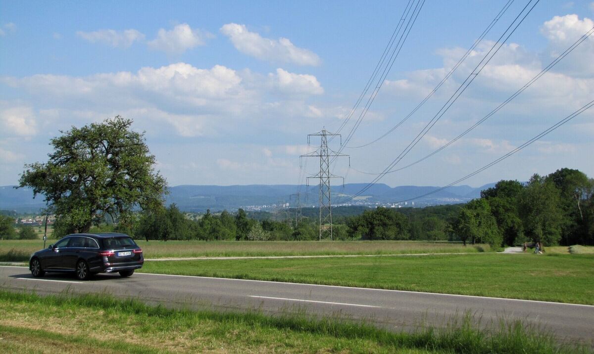 Südlich der B 464 und links der Hochspannungsleitungen liegen die Prüfflächen der ersten Anhörung des Regionalverbands Neckar-Alb, auf denen einmal Fotovoltaik-Anlagen erstellt werden könnten. Allerdings sind diese Flächen wertvoll für die Landwirtschaft. FOTO: MÜLLER