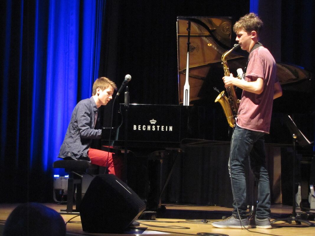Der junge Saxofonist Jakob Manz (rechts) im neuen Forum4P in Pliezhausen zusammen mit dem Pianisten Hannes Stollsteimer. Foto: Müller