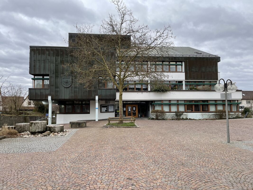 Über dem Rathaus von Pliezhausen hängen düstere Regenwolken. Der Haushalt ist in diesem Jahr nur wegen Grundstücksverkäufen nicht so sehr im Minus. Auf der Agenda steht die Sanierung des holprigen Marktplatzes vor dem Rathaus.