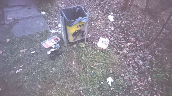 PLIEZHAUSEN. Am Samstag haben 200 Pliezhäuser Bürger während der traditionellen Markungsputzete die Natur von Müll befreit. Doch bereits einen Tag später lag am Grillplatz beim Zwei-Eichenturm in Pliezhausen wieder Müll. Das hat Christa Mieser gesehen und dem GEA ein Bild geschickt. Darauf ist ein Mülleimer zu erkennen, neben dem Plastikschalen für Grillfleisch ebenso liegen wie eine Tüte und Tücher. »Am Samstag haben wir alles sauber aufgeräumt, am Sonntag sah es wieder ›fast normal‹ aus«, teilt Mieser mit. Das habe sie gefrustet.