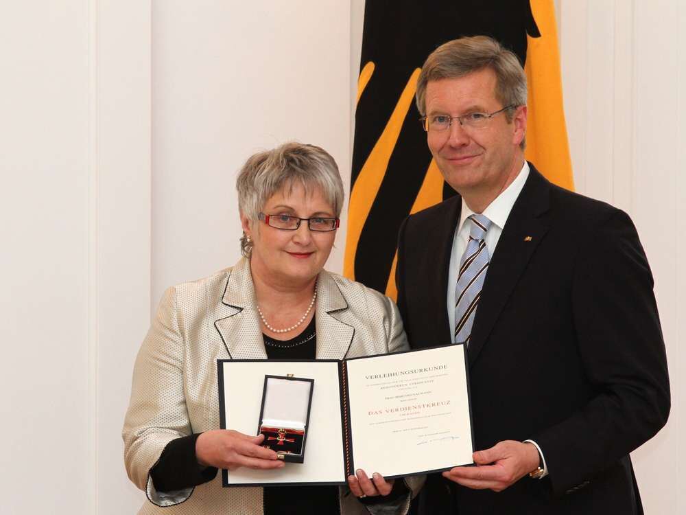 Präsident ehrt Präsidentin: Irmgard Naumann erhält von Christian Wulff das Bundesverdienstkreuz.