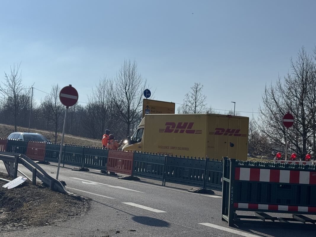 Probleme gab es am Dienstag, wie bei diesem DHL-Fahrer, der einfach die Baustelle ignorierte. FOTO: RUOF