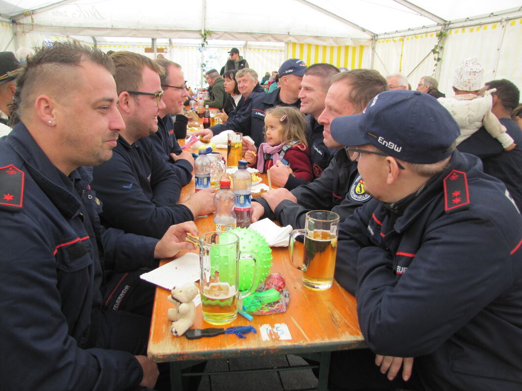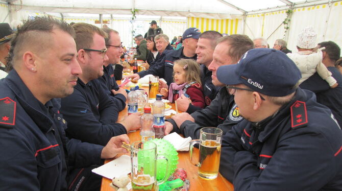 Am Sonntag schaute auch die Feuerwehr beim Straßenfest des Liederkranzes in Walddorf vorbei.