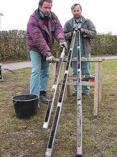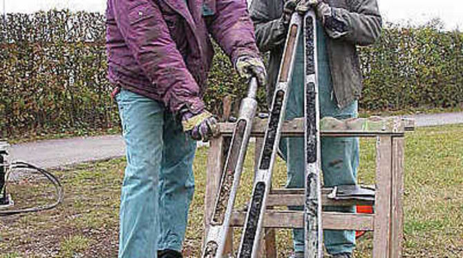 Erik Mögle und Gerold Althaus schauen sich Metzingens ehemalige Hausmülldeponie Bongertwasen von links nach rechts im Profil an. GEA-FOTO: JSG