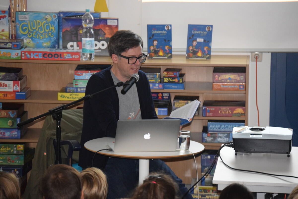 Der Witz kam bei seinem Auftritt in der Mediathek nicht zu kurz. Dabei testete er gleich zu Beginn, ob die Grundschüler auch Ironie verstehen: »Das, was ich euch vorlese, sind eigentlich Gutenachtgeschichten. Deshalb lese ich jetzt besonders langweilig vor, damit ihr auch einschlafen könnt.« Die Lacher aus dem Publikum kamen sofort. Also: Kinder können Ironie richtig gut.