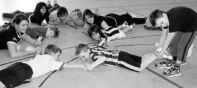 Bewegung und Sport für Vorschulkinder in der Schönbeinhalle: Karotten-Ziehen nennt sich dieses Spiel.