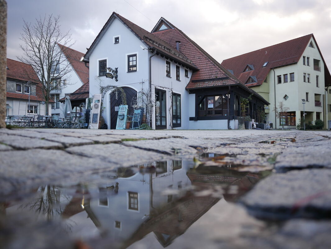 Menschenleer: Der Metzinger Kelternplatz mit Blick auf die Innere Heiligenkelter.