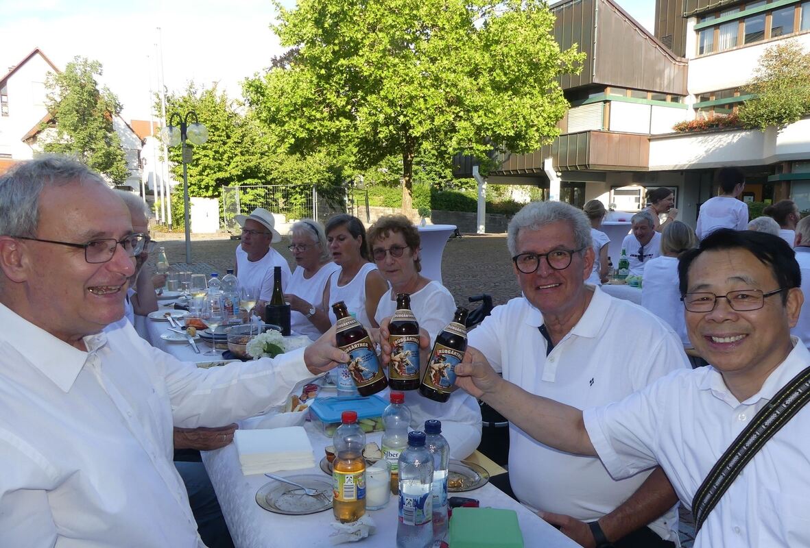 Rege Gespräche und Rübgärtner Bier beim White Dinner in Pliezhausen
