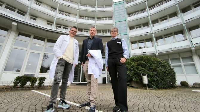 Chefarzt-Wechsel an den Fachkliniken Hohenurach: Professor Christoph Ihle (Mitte) steht ab dem nächsten Jahr der Orthopädie vor und löst damit Dr. Thomas Drabiniok (links) ab. Geschäftsführer Uli Wüstner (rechts) freut sich über den reibungslosen Übergang.