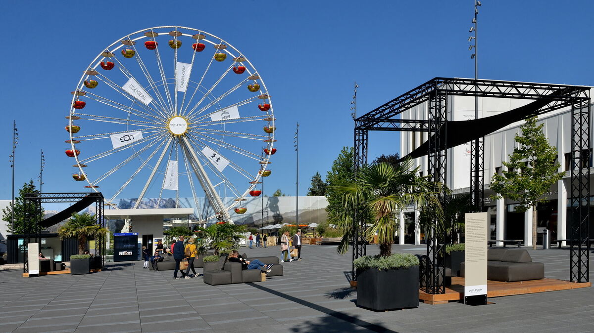 Das Riesenrad in der Outletcity hat regen Zulauf. Beliebte Fotomotive der Besucher: der Blick über den Rand der Schwäbischen Alb und die Perspektive ins Ermstal. FOTOS: NIETHAMMER