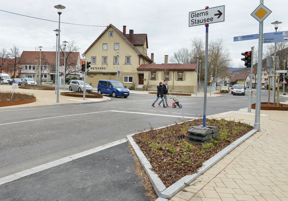 Die Salonkreuzung in Neuhausen wird bis April/Mai noch mit Pflanzen und Bänken bestückt. Der Feinbelag auf der Straße kommt jedoch erst nach der Sommerpause drauf.