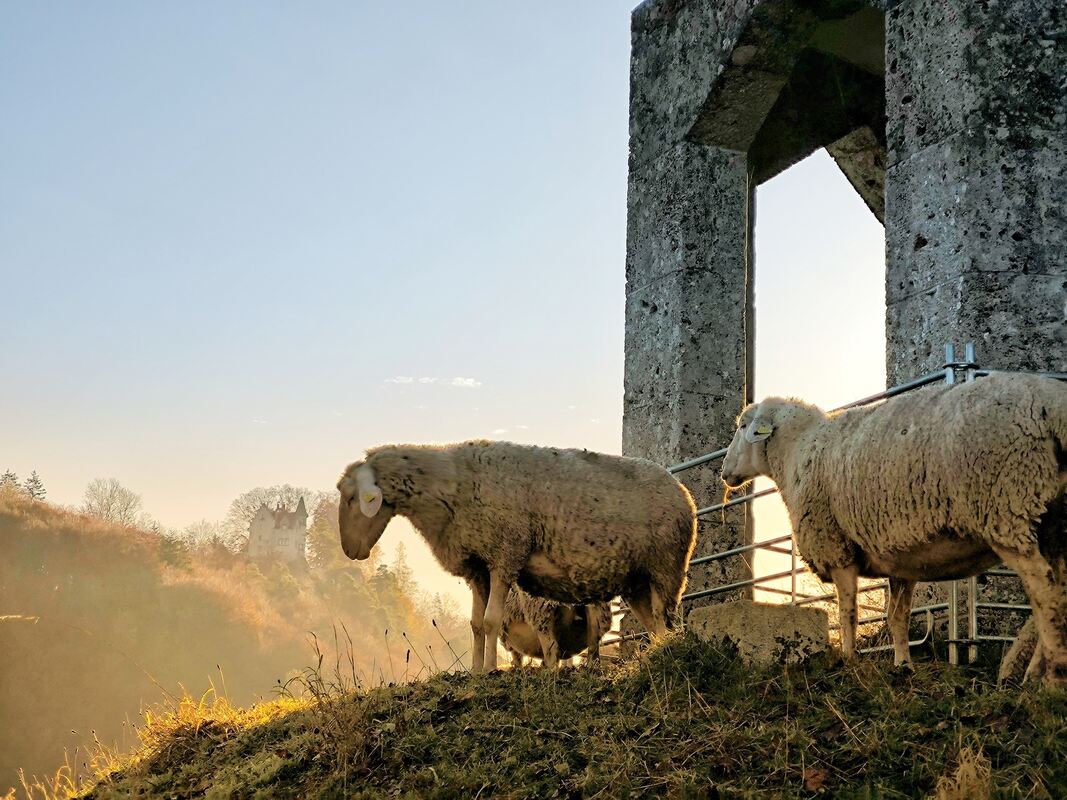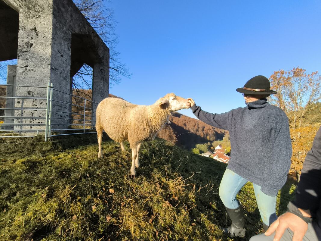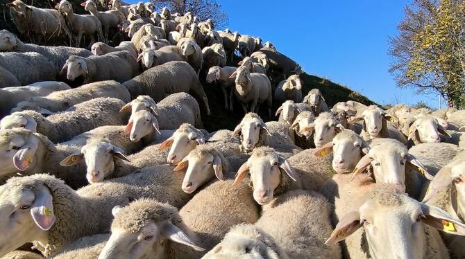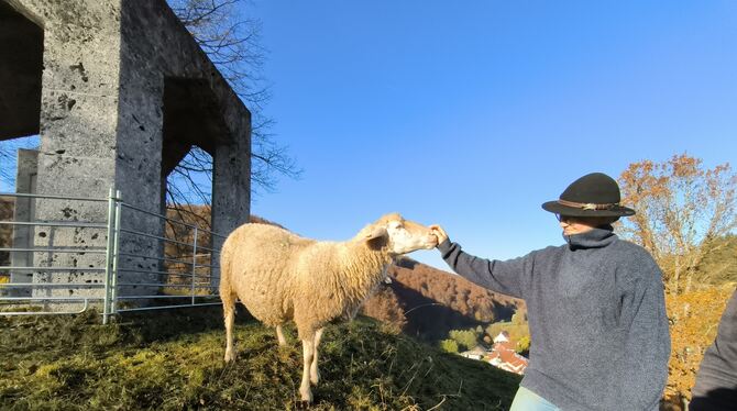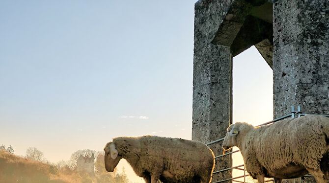 Der Uracher Stadtschäfer Christoph Röhner mit seiner Partnerin Jacqueline Kaeber auf dem Seeburger Burgberg, wo sich die Schafe um die Landschaftspflege kümmern. Kürzlich sind sie mit dem Kulturlandschaftspreis ausgezeichnet worden, den der Schwäbische Heimatbund und die Sparkassen-Finanzgruppe jährlich ausloben. Bei aller Freude über die Anerkennung: Die Schäfer haben gerade viele Sorgen, weil die Blauzungenkrankheit in der Region angekommen ist.
